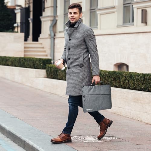 Home Amazon Basics Laptop Bag Sleeve Case Cover Pouch with Handle for Men & Women | 15.6 Inch Laptop with Padded Laptop Compartment | Zipper Closure | Water Repellent Nylon Fabric (Grey)