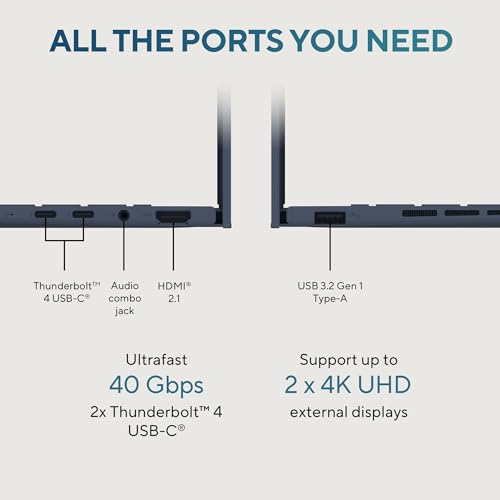 I/O Ports : 1x USB 3.2 Gen 1 Type-A (data speed up to 5Gbps), 2x Thunderbolt 4 with support for display / power delivery (data speed up to 40Gbps), 1x HDMI 2.1 TMDS, 1x 3.5mm Combo Audio Jack