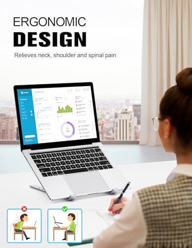 ♥【Cooling & Ventilation Design】100% Aluminum alloy material can absorb and discharge heat easily. What’s more, the hollow design and forward-tilt angle offers great heat dissipation and natural airflow to prevent your laptop from overheating.