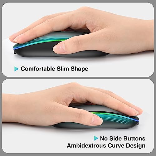 cimetech Dual Mode (BT 5.1+2.4G) Wireless Mouse with LED Lights, Silent Portable Lightweight Rechargeable Mouse for Laptop, Compatible with Mac OS/Windows/Chrome OS – Black