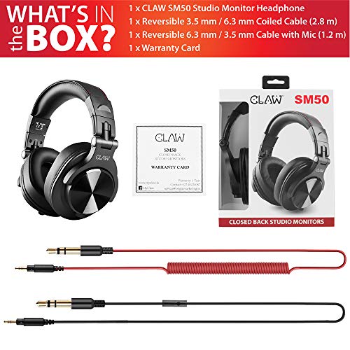 What’s included: CLAW SM50 headphones, 2.8m Coiled cable, 1.2m straight cable with mic and in-line controls
