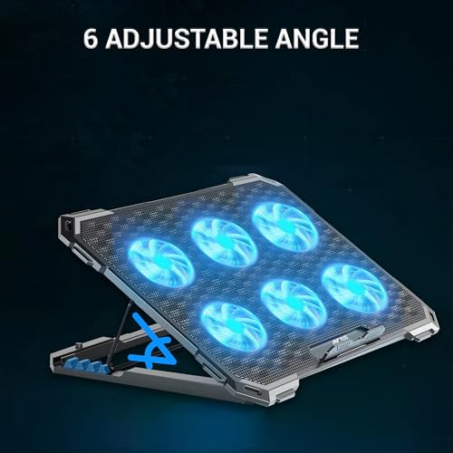 Dracula 60 Laptop Cooling Pad, Gaming Laptop Cooler with 6 * 1 Quite Fans, Fan Speed Controller 5 Height Adjustable Angle 2 USB Ports Compatible for Laptop, Notebook up to 17”