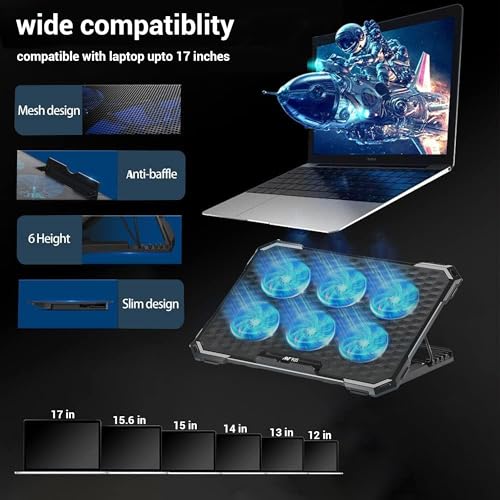 Home Dracula 60 Laptop Cooling Pad, Gaming Laptop Cooler with 6 * 1 Quite Fans, Fan Speed Controller 5 Height Adjustable Angle 2 USB Ports Compatible for Laptop, Notebook up to 17”