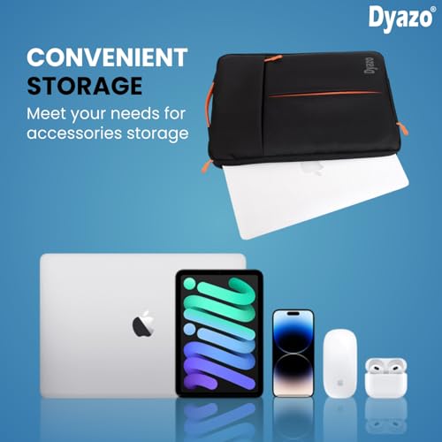 Dyazo 13-13.3 Inch Sleeve Case for Laptop | Cover Bag with Handle & One Front Accessories Pocket | Compatible for MacBook Air/Pro, HP, Dell, Asus, Acer, Lenovo and Other Notebook (Black & Orange)