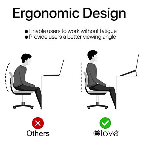 [REDUCE NECK FATIGUE & SPINE PROBLEM] The slim compact stand elevates your laptop by 6’’ to a perfect eye level and prevents you from hunching over your screen, which reduces neck and shoulder pain. This stand provides a comfortable viewing height (eye-level) which is roughly the same height as a typical LCD monitor. All around the design of this unit is geared toward improving user productively and comfort.