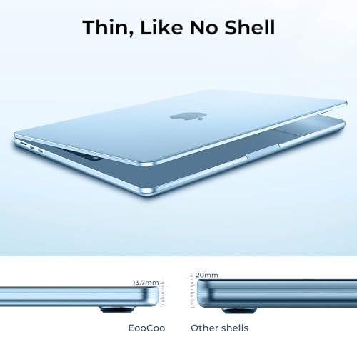 Home EooCoo Case Compatible for MacBook Air 13.6 inch M4 M3 M2 2025 2024 2022 Release,A3240 A3113 A2681 Translucent Matte Protective Hard Shell Cover,[Ultra-Thin Invisible] [Original Texture]-Sky Blue