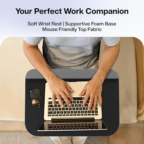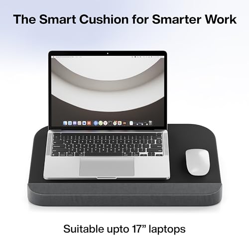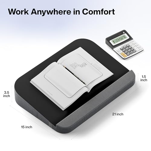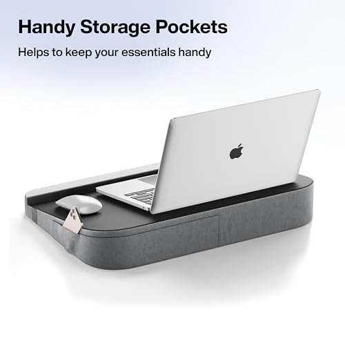 Home FOVERA Tabletop Laptop Riser Stand Cushion | Fits up to 17” Laptops | Large (21 x 15 x 3.5 Inch) Lightweight, Mouse-Friendly Top, Soft Wrist Support & Side Pockets | for All Laptops (Dark Grey)