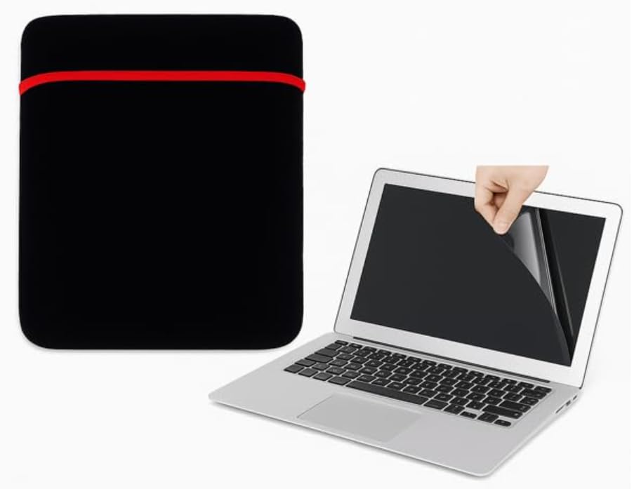 Screen Protector (Matt Finish) Compatible Dimensions: Fits for all 15.6 inch with Aspect Ratio 16:9 display laptop – screen guard size – Width 13.6inch (34.5cm) x Height 7.6 inches (19.4cm) – Measure your screen size as image to avoid buying wrong.Dual-Tone Reversible Design: Switch up your style effortlessly with this reversible laptop sleeve—sleek red on one side, classic black on the other. Whether you’re heading to work or a casual café meet, this dual-color laptop cover lets you match your mood without buying two separate sleeves.
