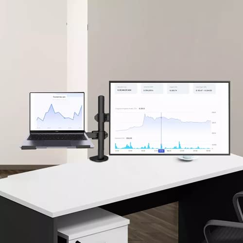 Dual-Mount Design: Supports both a monitor up to 27″ and a laptop (up to 5 kg) simultaneously, freeing up desk space and increasing productivity.Sturdy Desk Clamp Installation: Comes with a heavy-duty ‘C’ clamp for supreme stability, ensuring your monitor and laptop are securely mounted.Concealed Wiring Design: Features a concealed wiring design to keep your desk neat and organized.Easy Installation: Includes all the necessary fixtures, fittings, and a quick-fit detachable VESA plate (75×75 mm or 100×100 mm) for simple installation.Laptop Cooling Tray: The laptop tray with venting holes helps keep your laptop cool and fits most laptops with a VESA size of 100×100 mm.