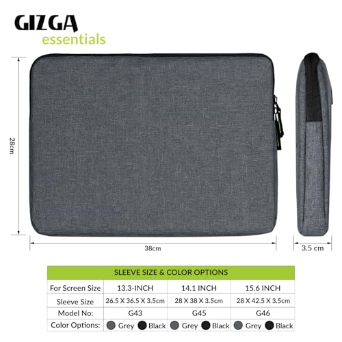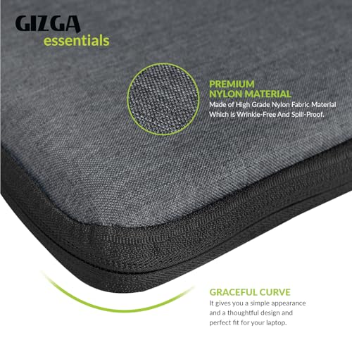 Gizga Essentials 14.1 Inch Laptop Sleeve Case Cover Pouch Bag with Front Pocket| Slim & Water-Resistant Nylon Fabric with Shockproof Foam Padding, Soft Lining & Premium Zipper Closure (Grey)