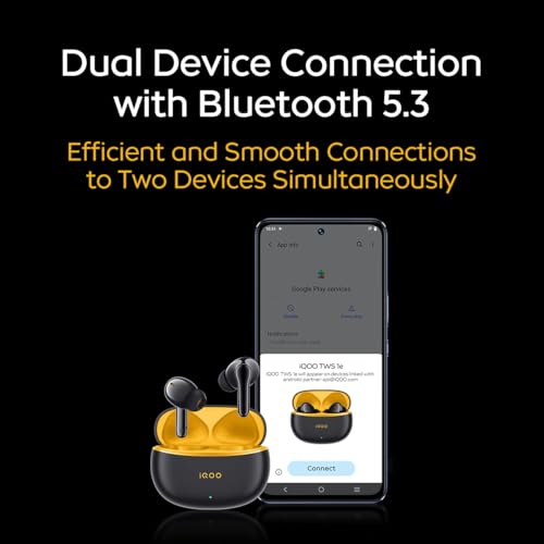 iQOO TWS 1e in-Ear Earbuds with Mic, Upto 30dB Active Noise Cancellation, Fast Charging which Takes 10 mins for 3 Hours Playtime, with Upto 42 hrs Playback time (Flame Yellow)