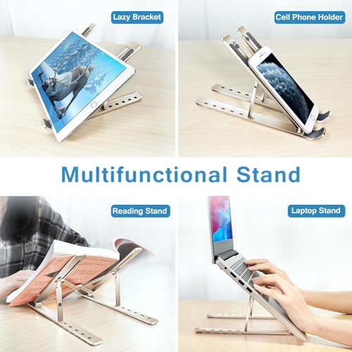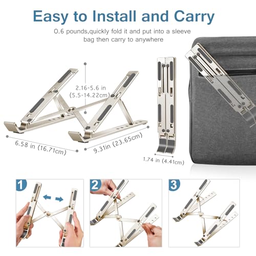 Home ivoler Laptop Stand, Laptop Holder Riser Computer Tablet Stand, 6 Angles Adjustable Aluminum Ergonomic Foldable Portable Desktop Holder Compatible with MacBook,iPad, HP, Dell10-15.6” Starlight