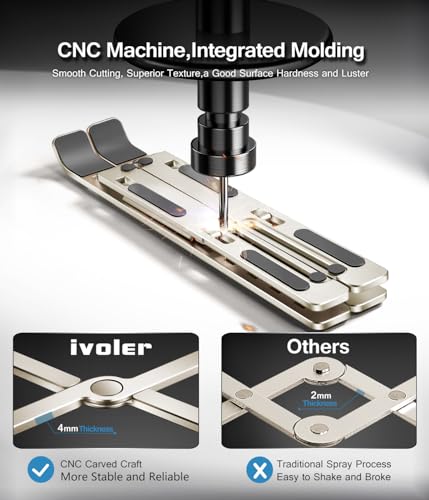 EXQUISITE WORKMANSHIP: Machined from anodized aluminum alloy, with sand blasted and brushed processes. With Non-slip silicone mat, avoid from risking of any scratches to your devices and stable placement.