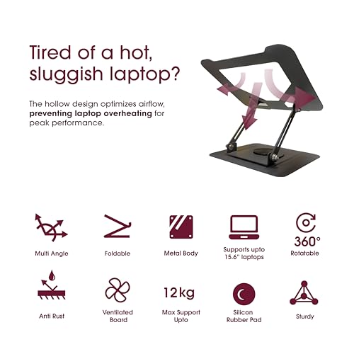 Robust All-Metal Build with Heavy Load Capacity: Made from premium rust-proof aluminum alloy, the stand supports laptops and devices up to 5Kg, providing exceptional stability with a secure anti-slip silicone base.