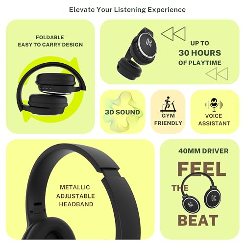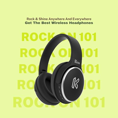 Home Klikk Rock On 101 Bluetooth Wireless Over Ear Headphones with Mic, 30 Hours Playback, AUX & SD Card, Voice Assistant Support with Foldable & Rotatable Compact Design (Black)
