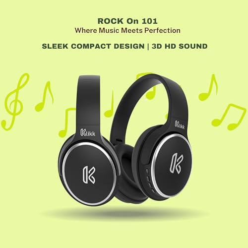 Klikk Rock On 101 Bluetooth Wireless Over Ear Headphones with Mic, 30 Hours Playback, AUX & SD Card, Voice Assistant Support with Foldable & Rotatable Compact Design (Black)
