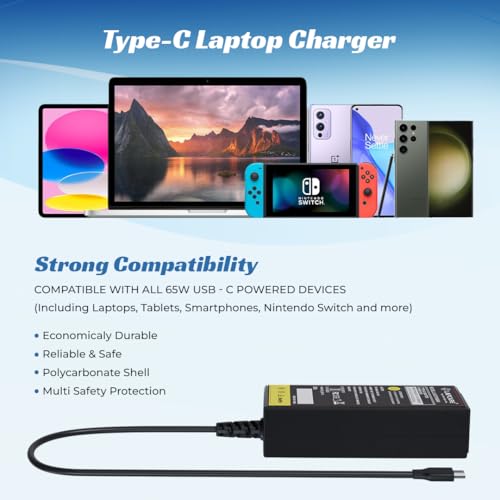 Home Lapcare 65W Type-C Universal Laptop Adapter Comaptible with Apple MacBook, iPad, HP (Pro Book, Spectre, Zbook, Elite, Envy, Pavilion, Chromebook) Dell, Lenovo, Acer, Asus, Samsung & Type C Phones