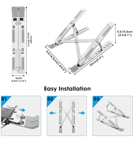 Laptop Stand with Zigzag Height Adjustable,Ventilated Aluminium Tabletop Laptop Stand Mount with 6 Angles,Metal Multi-Angle Compatible with All Laptops,Notebook & Tablets(Silver Color)
