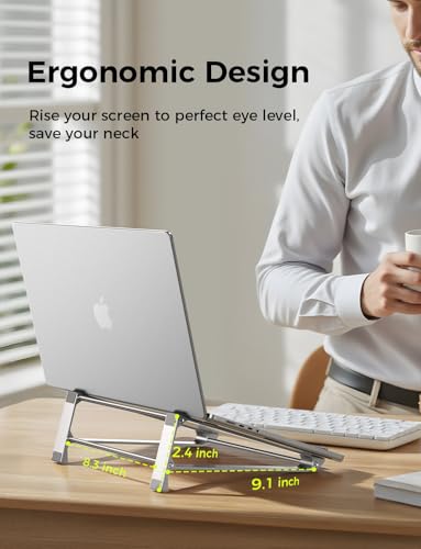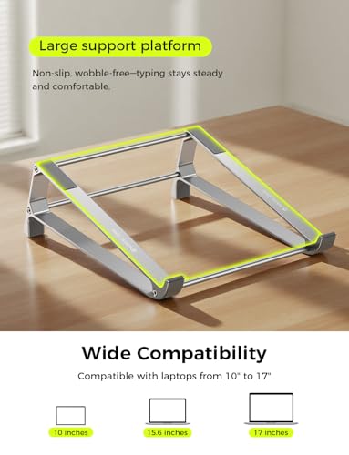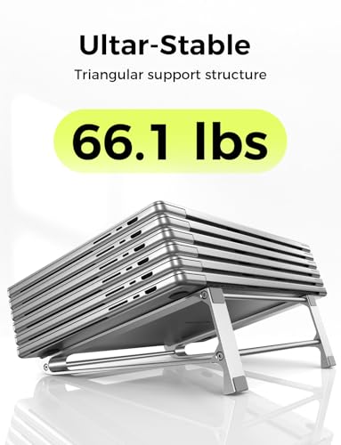 Aerospace-Grade Aluminum & Anti-Slip: Metal laptop stand crafted from lightweight aircraft aluminum (holds 30 kg!). Silicone pads keep the base from sliding while the arms shield your device from scratches. Ideal for delivering rock-solid stability to your laptop.