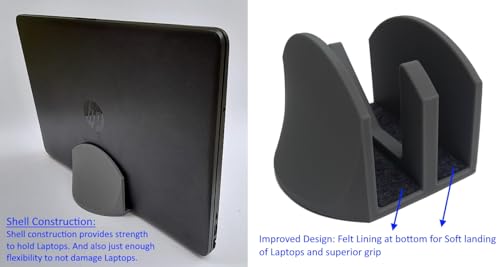 Laptop vertical stand to conveniently dock your Laptop and free up desk space. Well engineered to keep the Laptop securely in place and to not topple. Suitable for Laptops up to 23 mm / 26 mm thickness. Made with Heat resistant PETG Plastic. Colour: