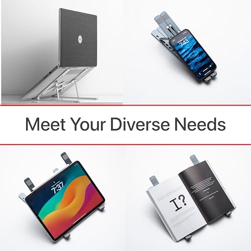 Home MegaStro® Laptop Stand for Desk with 7 Adjustable Angles, Aluminum Ergonomic Foldable Portable Compatible with All Brands 6-17.3 [with Pouch] [with Wire Protectors] (Metallic Silver)