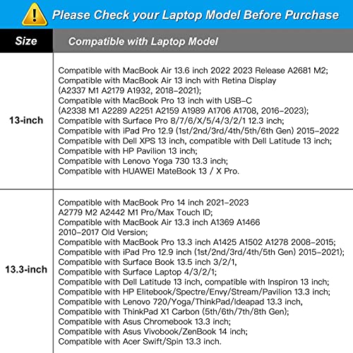 Compatible with MacBook Pro 14 inch 2022 2021 A2442 M1 Pro/M1 Max with Touch ID, compatible with MacBook Air 13 inch A1369 A1466 2010-2017, compatible with MacBook Pro 13 inch A1425 A1502 A1278 2008-2015; Compatible with Surface Book 3/2/1 13.5, compatible with Surface Laptop 4/3/2/1 13.5; Compatible with Dell Latitude 14; Compatible with HP Elitebook 13.3/Spectre X360 13.3/Envy 13/Stream 13/Stream 14/Pavilion 14; Compatible with Lenovo ThinkPad X1 Carbon; compatible with Lenovo IdeaPad 13/14.
