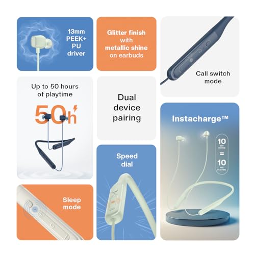 Up to 50 Hours of Playtime: Enjoy extended listening with 50 hours of battery life and Instacharge for 10 hours in just 10 minutes.