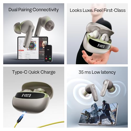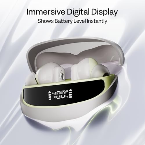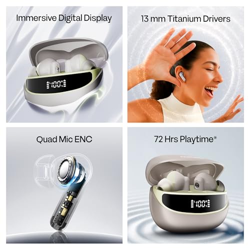 Home Number Navo Buds Z1 TWS Earbuds | 72H Playtime | Digital Display Case | Quad-Mic ENC | Dual Pairing | Hi-Bass 13mm Drivers | Quick Charge | 35ms Low Latency | IPX5 | Touch Controls | (Spring Beige)