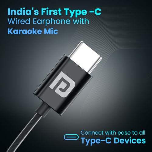 Portronics Conch One India 1st Type C Wired Earphone With in-Built Karaoke Mic,Deep Bass,8 Karaoke Mode,4 EQ Modes,Easy Control, Compatible With Karaoke Apps, Compatible with All Type C Devices(Black)