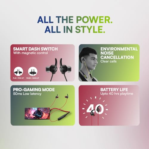 Probuds Wave 921 (Green) Dual-Tone Noise Cancellation BT Neckband with 50ms Low Latency Gaming, 10mm Drivers, Bass Boost, ENC Calls, 40Hrs Playtime, Fast Charging, IPX6, Dash Switch, Dual Pairing