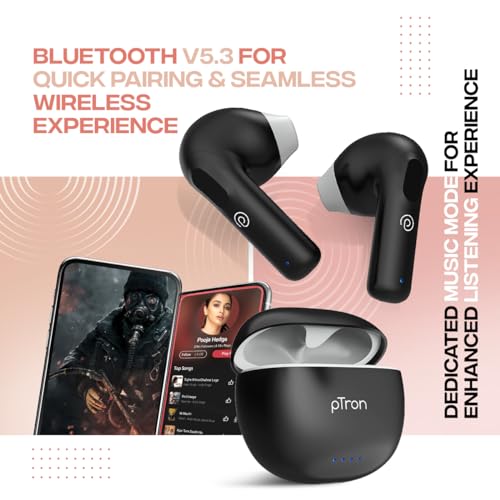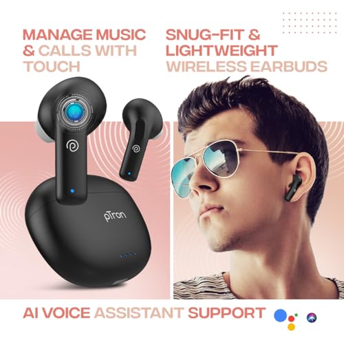 Lightweight & snug-fit pTron earbuds with precise touch-sensitive sensors (just 4gms each) | Stereo/mono bud capability | In-ear vacuum design for passive noise cancellation | Voice Assist. Support