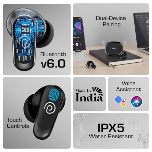 Advanced Bluetooth V6.0 Tech w/ Quick Pairing & Dual-Device Pairing || Dynamic 13mm Drivers Deliver Captivating Sound with Deep Bass || Ergonomic & Snug-fit TWS Earbuds || Simple Touch Controls