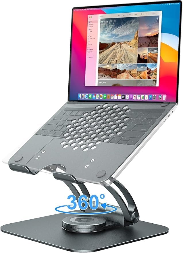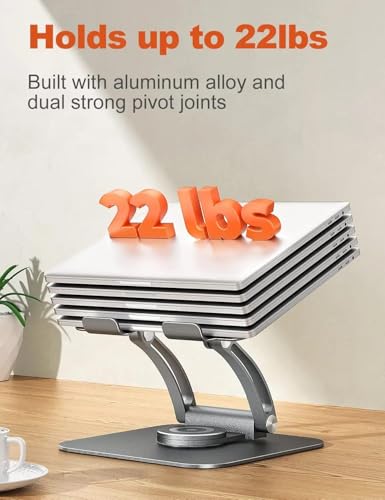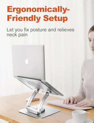 Dyazo Laptop Stand Foldable Height Angle Adjustable Laptop Riser for Desk Compatible for MacBook, Lenovo, Dell Notebook up to 15.6 Inches 360 Rotating Base (Silver)