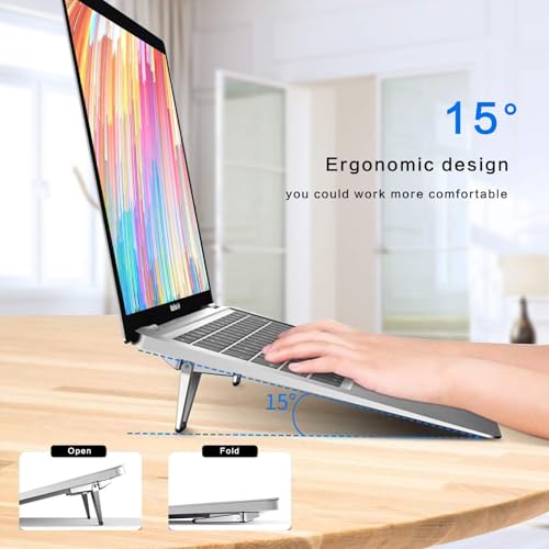 【Ergonomic Comfort】Elevate your laptop to the optimal viewing and typing height with our ergonomic mini laptop stand. Say goodbye to neck and shoulder strain caused by prolonged typing sessions, as its carefully designed angle ensures comfortable viewing and typing, enhancing productivity and comfort.