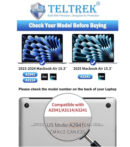 Compatible with MacBook Air 15 inch M2/ M3/M4 (2023-2025) A2941, A3114, A3241 – Premium MacBook/ Laptop Screen Guard / Screen protector, Pls Check the Model Version & Display Size of your Macbook/Laptop for accurate Fit. MacBook Air 15 inch M2/ M3/M4 (2023-2025) A2941, A3114, A3241 Screen Protector provides scratch resistance, dust protection, and anti-fingerprint performance. Unlike tempered glass, this guard is lightweight, thin, and reusable.Perfect fit with ensuring accurate edge-to-edge coverage for MacBook Air 15 inch M2/ M3/M4 (2023-2025) A2941, A3114, A3241.Gloss Finish Crystal Clear – Maintains Screen brightness and clarity while reducing reflections for MacBook Air 15 inch M2/ M3/M4 (2023-2025) A2941, A3114, A3241.Easy Bubble-Free Installation – Simple to apply, residue-free removal. Trusted Teltrek quality Screen Guard for MacBook Air 15 inch M2/ M3/M4 (2023-2025) A2941, A3114, A3241.
