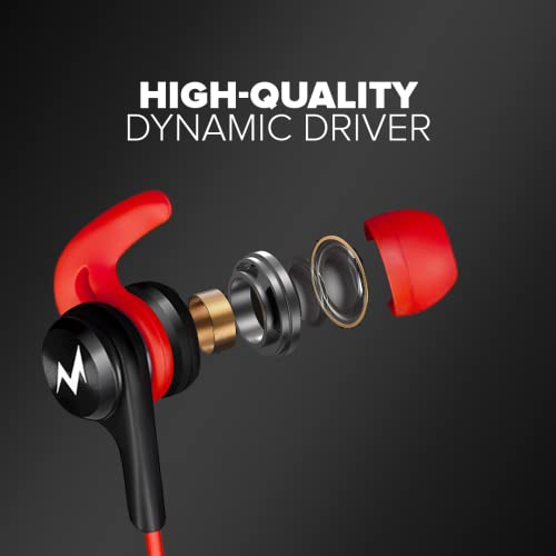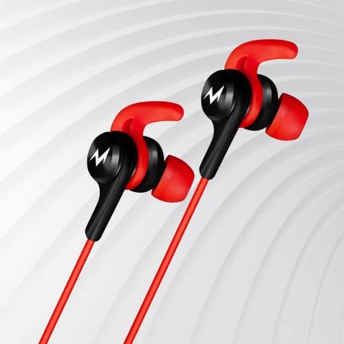 TEMPT Zoom X1 in Ear Wired Earphone with Mic, 3.5mm Audio Jack, 12mm Powerful Driver, Enhanced Bass, Noise Cancelling Headphone, 1.2m Tangle-Free Cable, for Phone/Tablet/Laptop/Desktop (Black + Red)