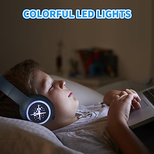 【7 Colorful LED Lights & Wire/Wireless mode】 Give light to the music with the incredible wireless kids headphones with LEDs! Which pulse to the rhythm of the music. You will love the fun colors and added visuals! Even when your headphone has run out of battery, you can plug in the 3.5MM audio cable to go offline mode to continue using.