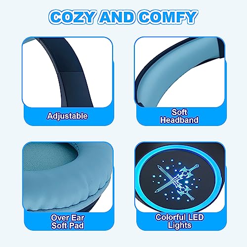 YUSONIC Cat Ear Bluetooth Headphones for Kids & Adults, Wireless Foldable & Wired Multi-Function LED Light Up Over Ear Headphones with Mic and Volume Control for iPhone/iPad/Laptop/PC (Black Sword)