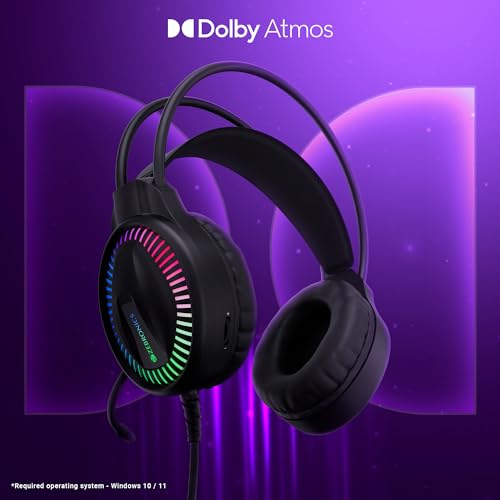 ZEBRONICS Blitz C Dolby Atmos Gaming Over Ear Wired Headphone, 50Mm Neodymium Drivers, Padded Headband, Lightweight & Comfortable, RGB Lights, Flexible Mic, Type-C Connector, Black