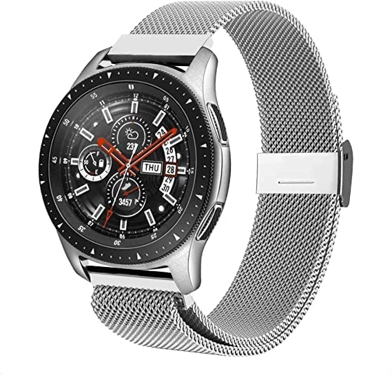 Prolet Metal Magnetic Clasp 20MM Strap Compatible with Amazfit GTS 2 Mini, Amazfit Bip, Amazfit GTS, Samsung Galaxy Watch & Watches with Lug Size 20mm Only, Mesh Loop Strap (Silver)