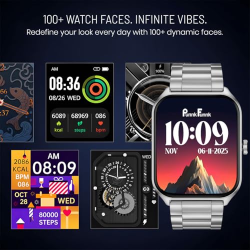 🖥️ Big 2.01” HD Display with Dynamic UI: The PunnkFunnk H18 features an ultra-bright 2.01” full-touch HD screen that delivers a smooth and vibrant viewing experience. Multiple customizable watch faces let you match your style every day.
