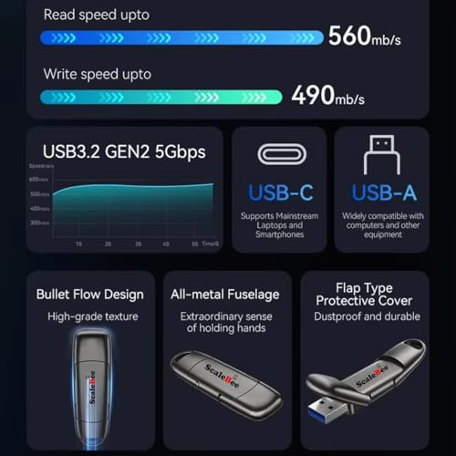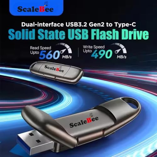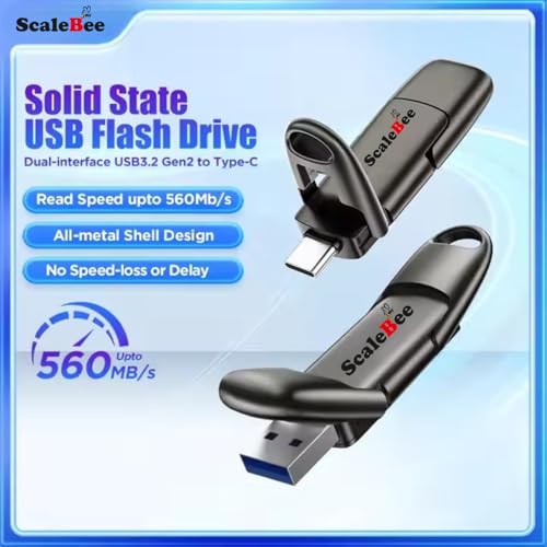 Scalebee 512GB Ultra Dual Drive USB 3.2 Metal Type C Pendrive 560MB/s Read SSD Solid State Flash Drives, Super High Speed Flash Drive for OTG Android Phone, Tablets Laptop, MacBook, PC (512 GB)