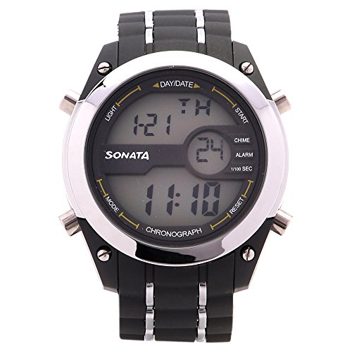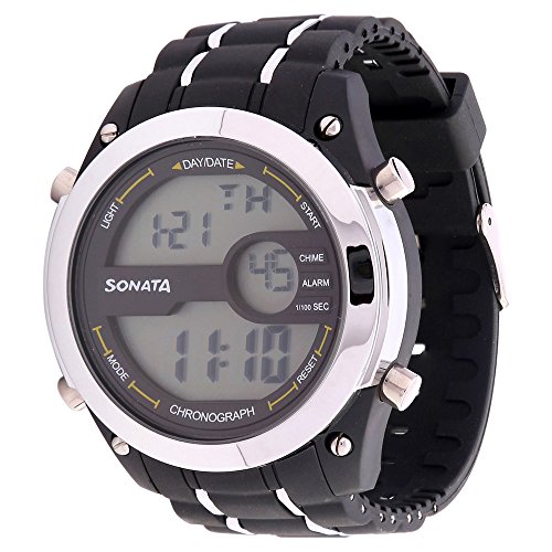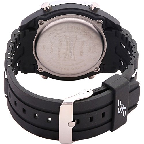 Engineered for performance and style, the SF watch blends a sporty design with versatile functionality. The bold black case is complemented by a contrasting silver bezel and pushers, creating a sleek two-toned aesthetic. The digital dial displays time, day, and date with precision, along with additional features like alarm, chime, stopwatch, and backlight. Designed for comfort and everyday durability, the black plastic strap with silver detailing enhances the rugged appeal of this timepiece.