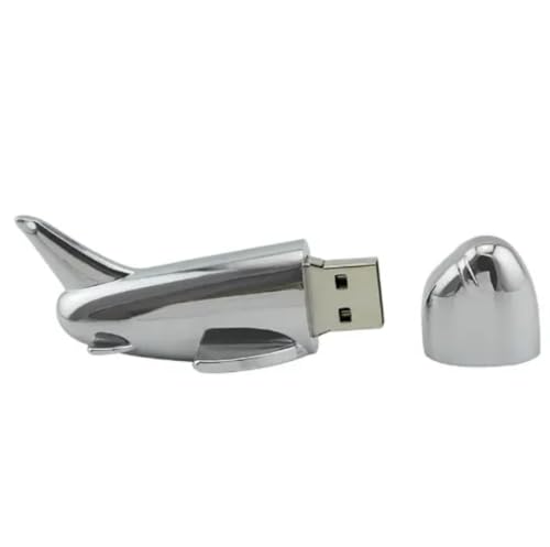 SippyTales~128GB Airplane USB Flash Drive, Metal Aircraft Shaped Portable Storage Device, Chrome Finish