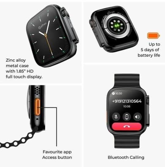 T800 Ultra Smart Watch, 1.85-inch Digital Display, Fitness Tracker with Heart Rate Monitor, GPS, Black