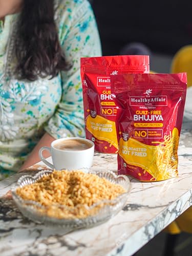 Rediscover your favorite Indian snack—reinvented for your modern lifestyle. Healthy Affair’s Guilt-Free Bhujia brings you all the bold, spicy crunch you love, without the baggage. Made from wholesome ingredients and 100% roasted, never fried, it’s high in plant-based protein and free from cholesterol, trans fats, palm oil, preservatives, artificial flavors, and colors.
