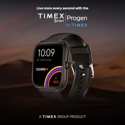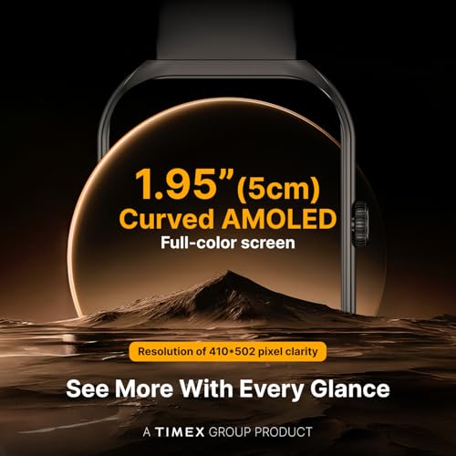 TIMEX Smart Progen 1.95″ (4.95 cm) Curved AMOLED Display with Functional Crown and BT Calling Smartwatch for Unisex – TWTXW800T, Black