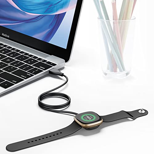 [Length of Charger] 3.15ft (96cm). The cable length is sufficient for application in any occasions, just plug your smartwatch into the charger head and the USB head into the USB port on your PC, laptop, notebook, wall charger or car charger to charge.