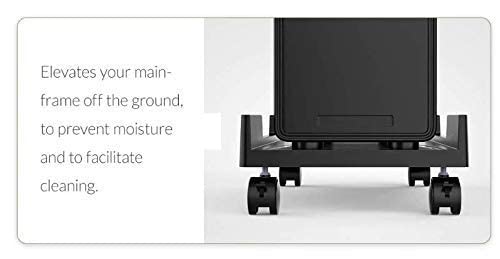 Description Now, make your CPU more accessible by placing it on this heavy movable Stand which is compatible with all leading brands. FEATURES 1. Universal & adjustable design to fit all sizes of CPUs 2. Length Adjustment mechanism & sturdy and easy locking. 3.Cpu Trolley is Hard and Sturdy PLASTIC A.B.S Body, Wheels With Locking System, Easy to Assemble, Easy to handle and transport Adjutable upto 9″ accommodate all types of CPU’s, Rubber grippers for reducing Impact and Holding CPU in Place About Size 4.Size : 18 x 29.7 CM Extended : 24.2 x 29.7 CM Color : Black Package Included : 1 x CPU Holder Trolley With 4 Wheels.