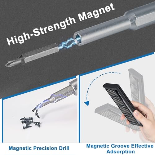 【Magnetic Design】 The mini screwdriver storage case and the handle both have magnetized area design, thus the screwdriver bits can be better absorbed. Besides, the magnetic tips can catch up the tiny screws in case of losing or falling.